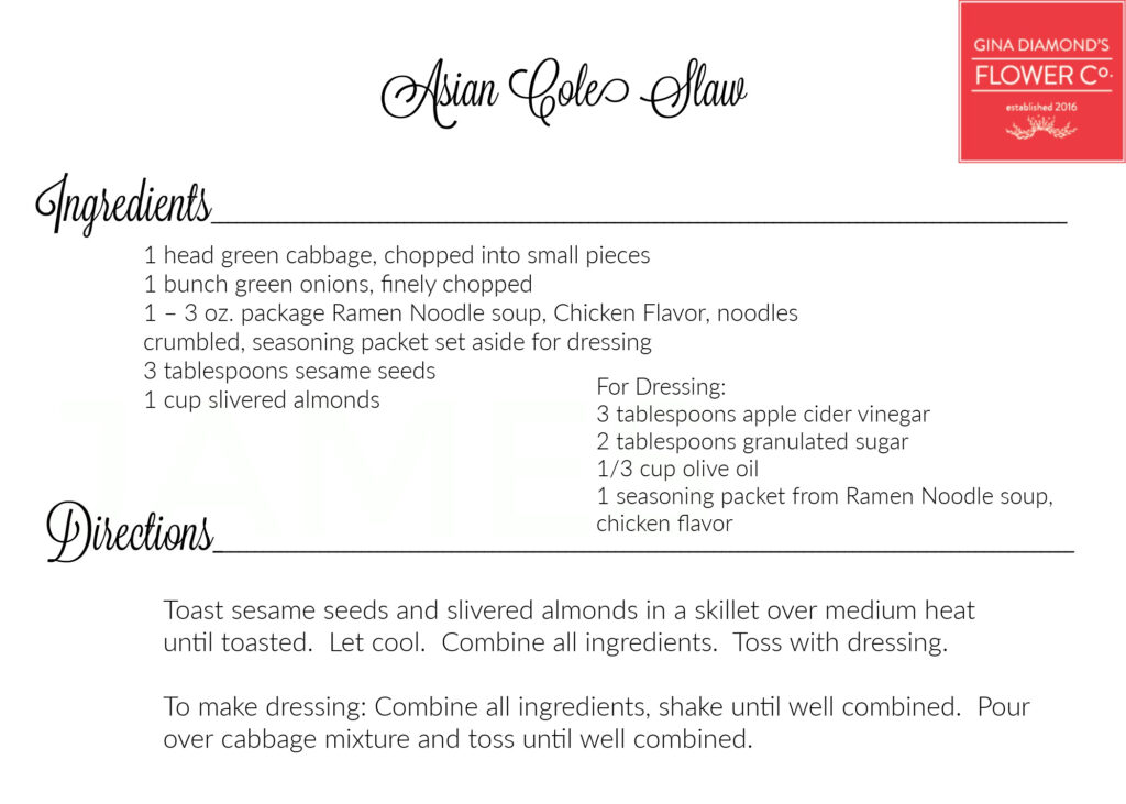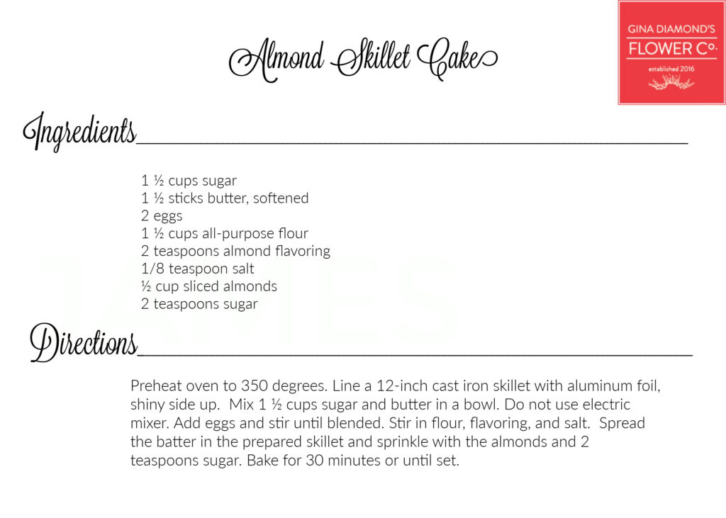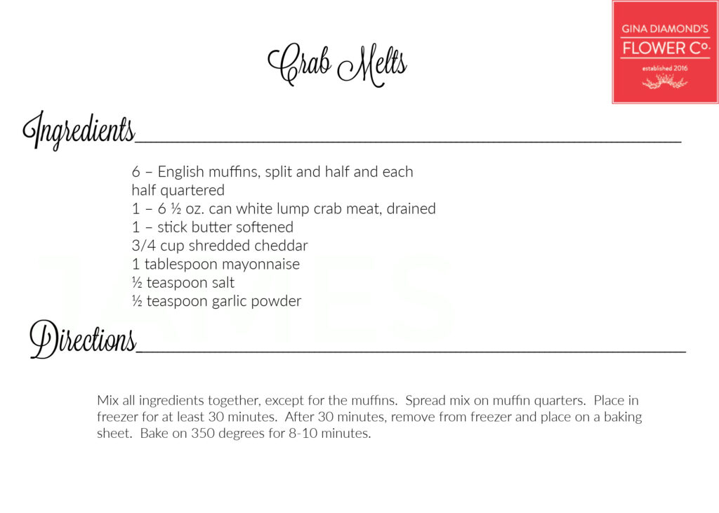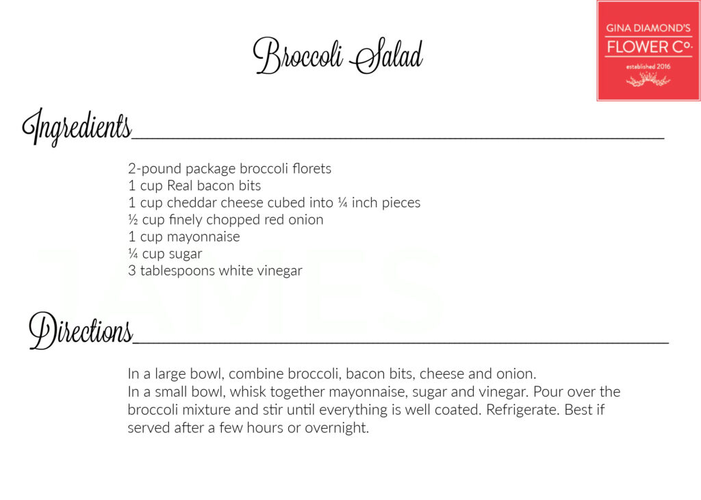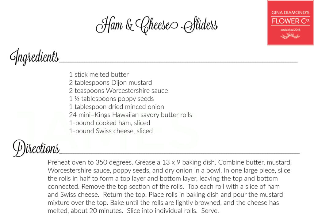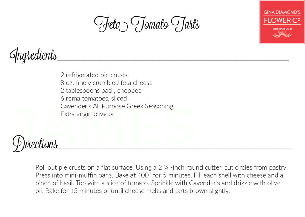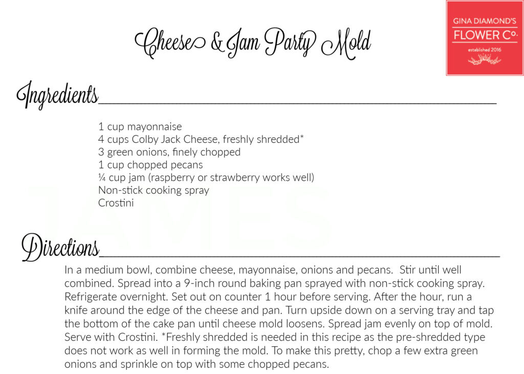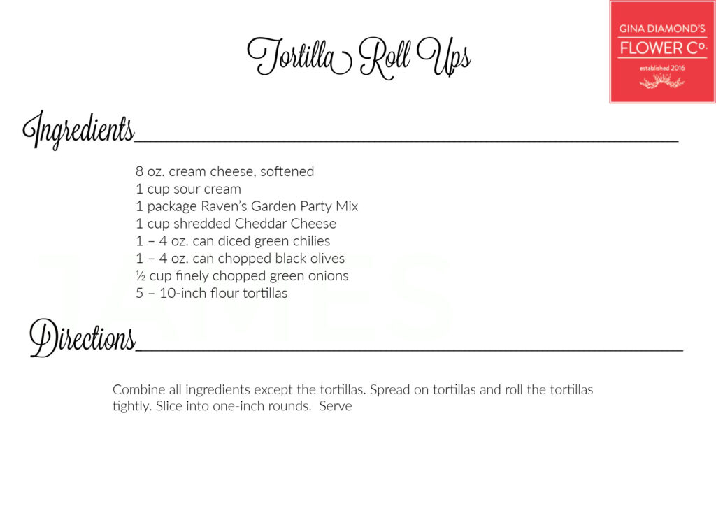 April 10, 2025 – We’re sharing the recipes for the food we served earlier this week at our Floral Design Workshop. Did you know that our workshops are full of flowers AND food? We usually serve delicious refreshments and over the years people have requested the recipes. You’ll find all of the recipes we’ve made for the Workshops and other events here on our recipe page.