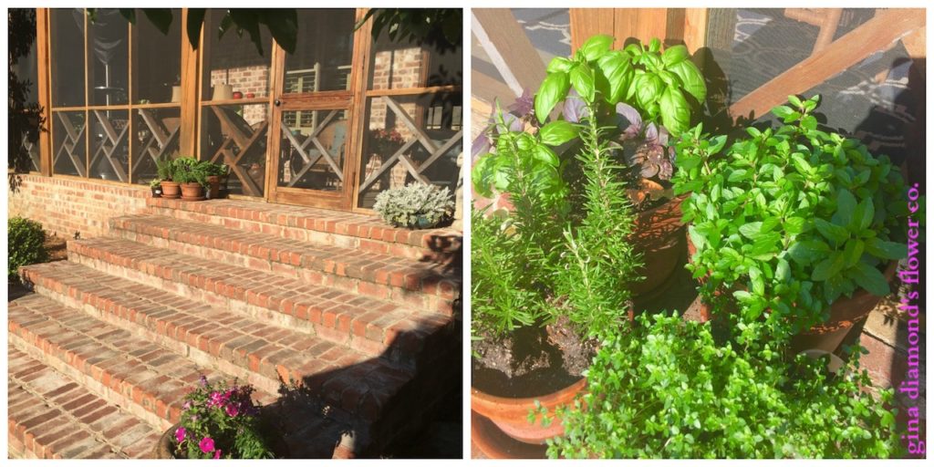 These are the steps that lead us into the backyard. We had these built at the same time as the patio. Previously there had been a tiny, wooden deck. I can’t imagine it without the steps now. If you have followed GDFC for a while, you may remember these herbs in this very same location last year. I keep these right by the back door for quick snipping when cooking. I have a few other herbs planted in the ground that we enjoy as well.