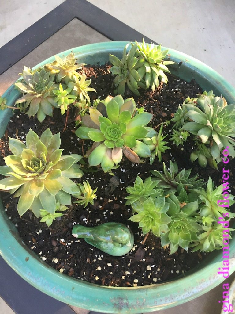 I have once again filled this planter with succulents. They basically take care of themselves and I very rarely water them. I can’t wait to see them grow as they tend to almost double in size over a season. I placed a little ceramic bird in along with them for a bit of interest. I’ll be posting about how to plant and care for succulents soon, so check back.