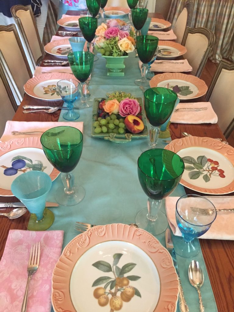 This is called a transitional design because the metallic pieces give you a hint of the coming holidays. It would be perfect for Thanksgiving.