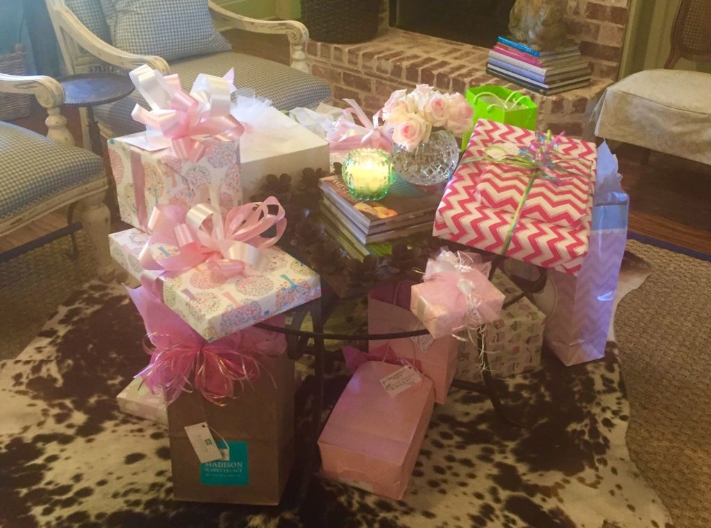 I took this photo of the gifts since they looked so pretty all together. Our sweet Mom to Be was so happy with everything she received. We look forward to meeting her precious baby girl in early June.