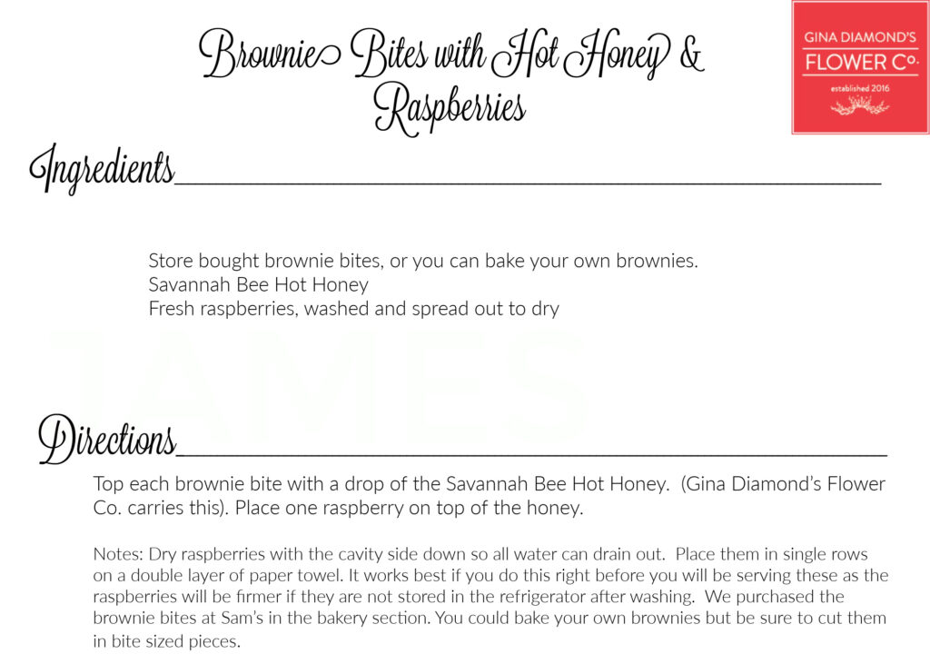 June 19, 2024 – We’re sharing the recipes for the food we served earlier this week at our Summer Soirée and Bridal Registry Launch. We usually serve delicious refreshments at our events and many of you ask for the recipes. You’ll find all of the recipes we’ve made for other events and the Workshops here on our recipe page. We also have a list of recipes by category and in alphabetical order so you can easily find a specific recipe. You will find it in the drop down menu under Recipes on the menu bar.
