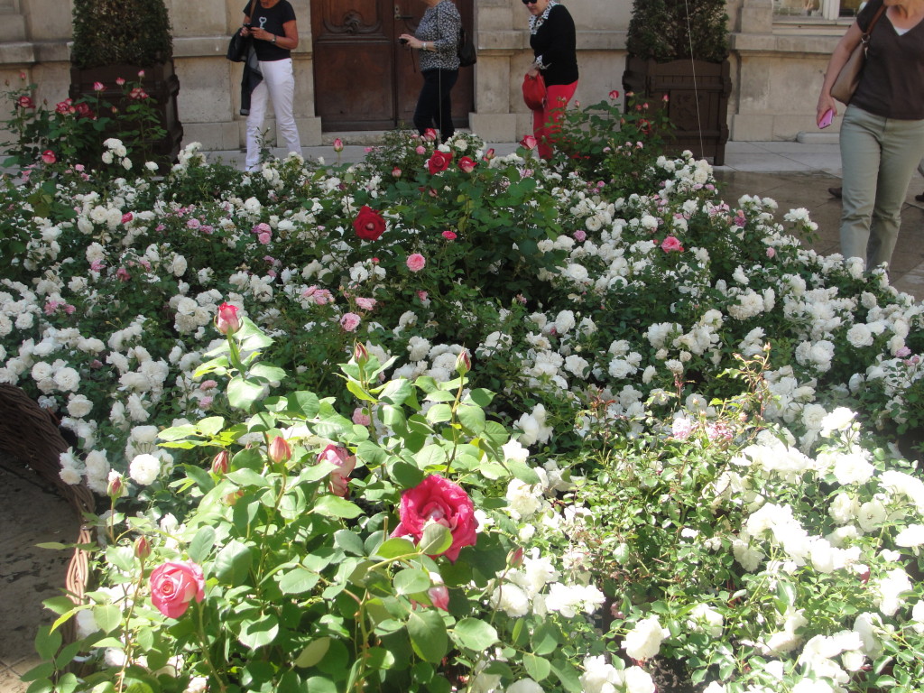 About the table: I used a French inspired tablecloth (source: HomeGoods, a recent purchase), toile placemats (source: Pier 1, purchased many years ago), rattan chargers (source: Pier 1, purchased many years ago), vintage cream napkins with a brown border (source: antique store), tortoise crystal (Pier 1) and Bamboo Flatware (source: Ballard Designs).