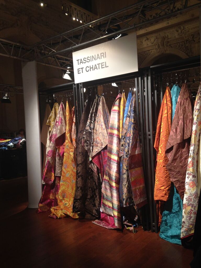 After sorting through bolts of silk, remnants, ribbons, scarves, ties, purses and pillows we came away with a few yards of silk (pictured below, left) from Tassinari et Chatel and plan on making some very special things.