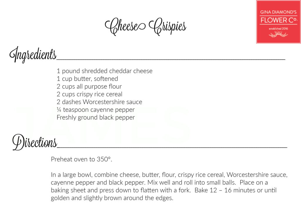 Friday, August 16, 2024 – Many of you have asked for the recipe for the delicious Cheese Crispies we’ve served at our 6th Anniversary Celebration & Sale (August 15th – 17th). Here it is, and we hope to see you in the shop! Enjoy 20% off store wide (some exclusions) during our sale and we’ll have some in-store prizes to giveaway! If you’re here, you obviously like to cook, so next time you’re in the shop be sure to check out all of our cookbooks and gourmet food items.