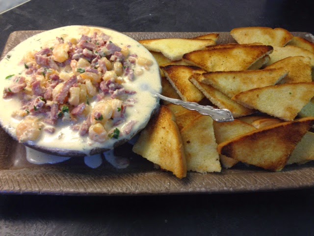 Melt butter in a large heavy skillet over high heat. Add the country ham. Saute quickly. Add garlic and leek.
