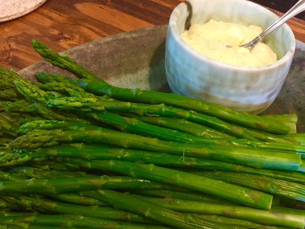 Fresh Asparagus with Curry Dip from Paula Deen. I have been preparing this recipe for years. While I thought this would be a nice accompaniment with the ham, it’s also great as an appetizer.