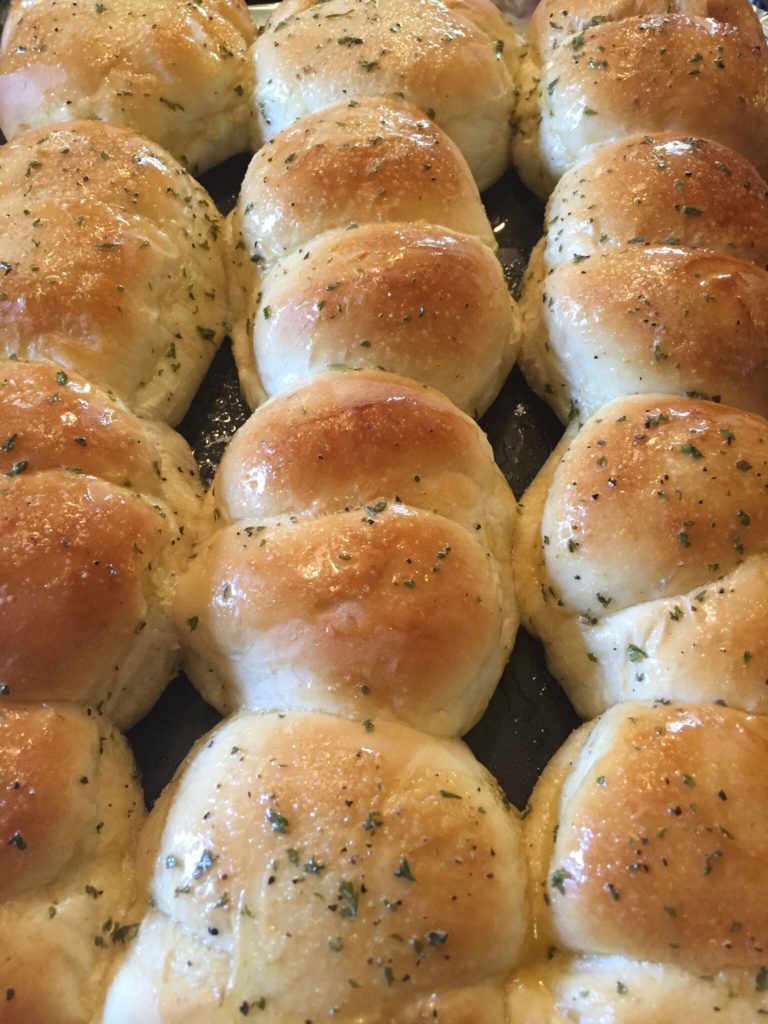 Dinner Rolls – A fun thing I like to do is purchase frozen yeast dinner roll dough. I place two rolls standing upright in muffin tin (sprayed with cooking spray) and follow the thawing/rising directions on the package. These are pretty and delicious!