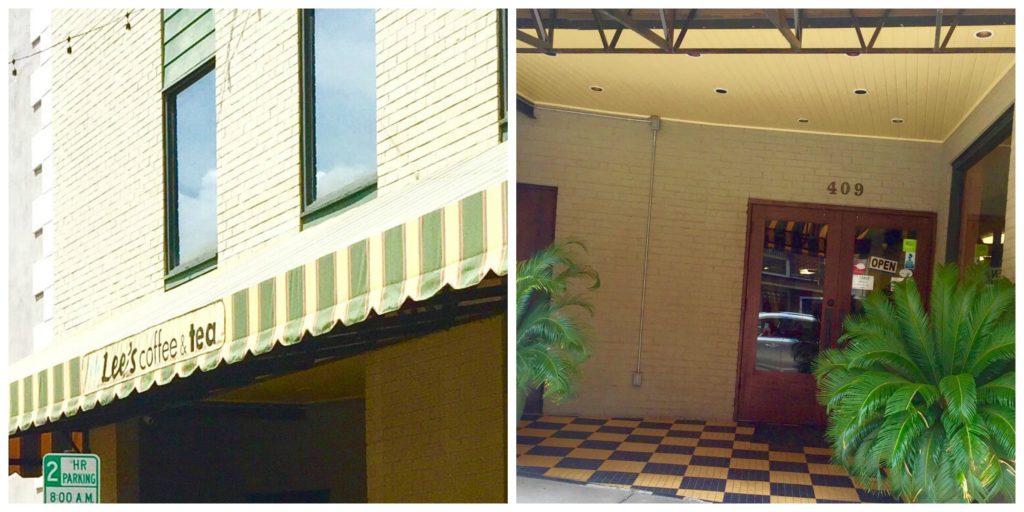 Pretty soon we reached Lee’s Coffee and Tea where we were able to park right in front. The inset entrance seemed to bring you back years with the colorful tile right outside the door.