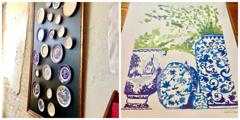 This display of blue and white plates on the black background was so striking and creative. It goes to show that art comes in many forms. And speaking of paintings, this print from none other than Erin Napier made the trip back home with us. It as if it was done especially for my house that happens to be filled with blue and white.
