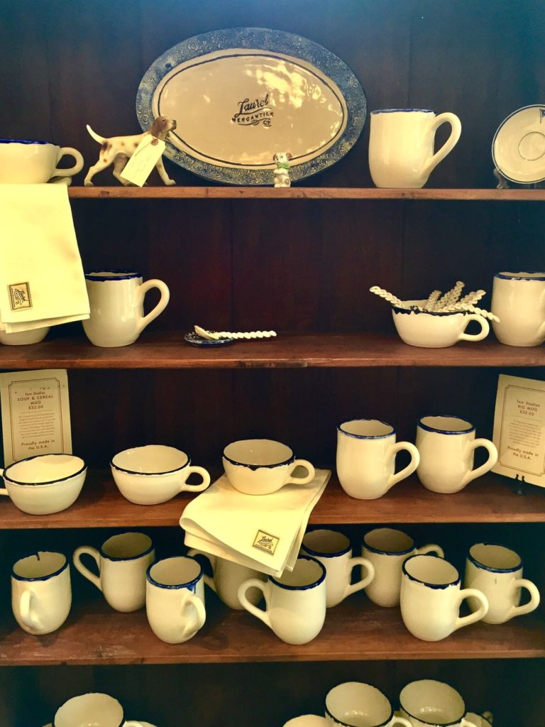Tew Pottery is located in Laurel and it seems to fit right in at the Mercantile. You know how I love anything blue and white!