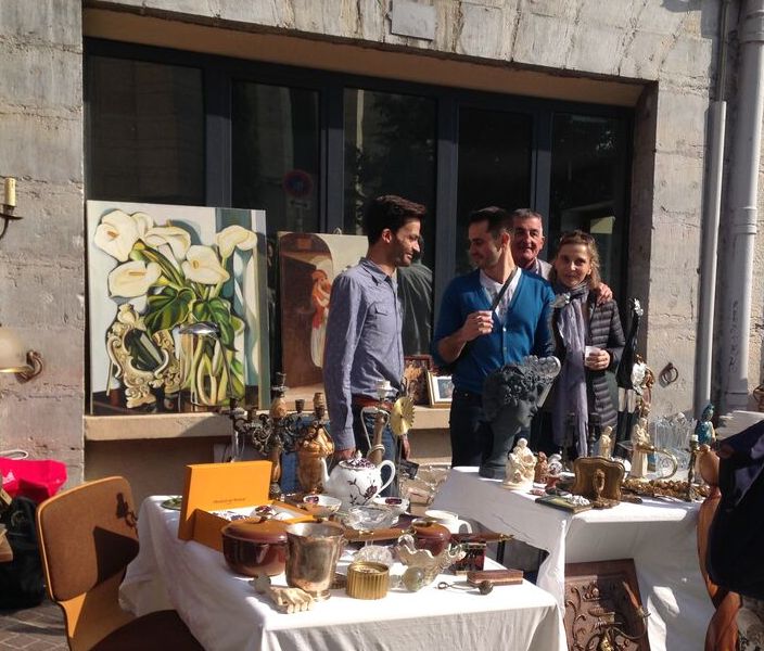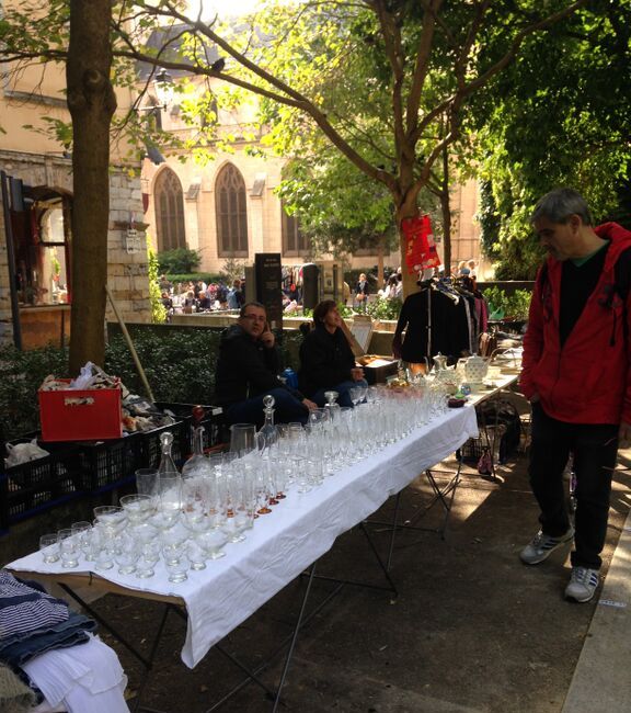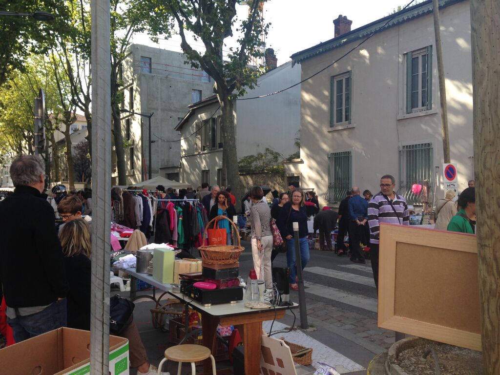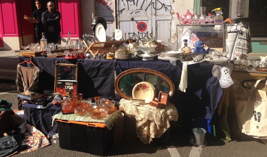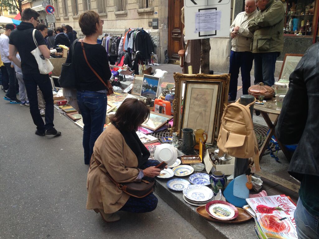September 27, 2015, posted by Michelle – September is a big month for vide-greniers (attic sales) in France, or what we’d call garage sales. But in lieu of actually being in garages, the sidewalks of a main street become packed with tables of household items and clothes being sold by residents of the neighborhood. It was a sunny, crisp fall day today so I took advantage of it by visiting several vide-greniers. You never know what you’ll find but I always find some wonderful things and today was no exception as I picked up some beautiful vintage linens and a few other items. Enjoy the photos(click on any individual photo to enlarge it):
