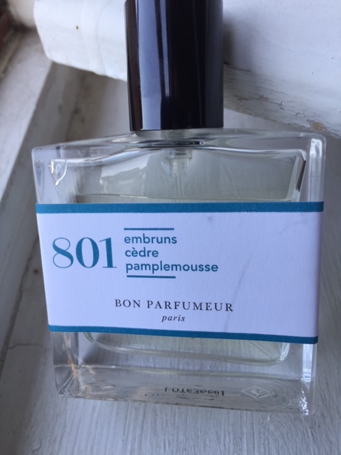 And from Across the Pond….Michelle told me she was out looking for a new perfume for the summer and she came across a a new brand called Bon Parfumeur. Their perfumes are 100% made in France and are numbered, rather than named, from 001 – 901. Each is identified by its three main notes. She told me she had a very hard time choosing but settled on 801 – Sea Spray, Cedar and Grapefruit. There are 15 unisex fragrances which can be wore alone or mixed together to create a very personalized scent.