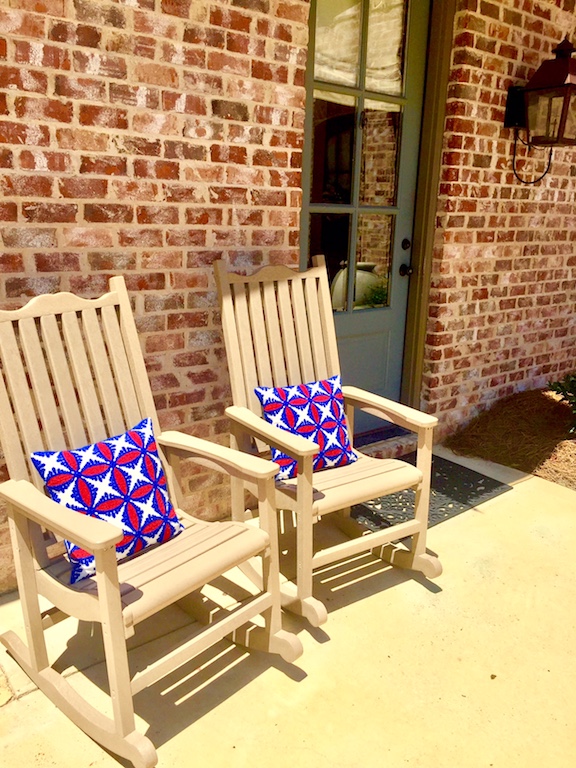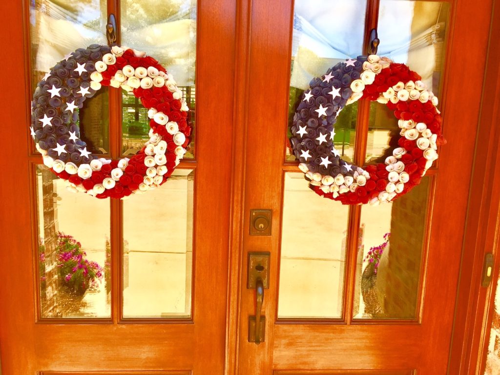 I found these wood curl wreaths last year and love how they welcome the 4th in high style. As if these weren’t patriotic enough, I also found a couple of red, white and blue pillows to coordinate with the wreaths. Happy 4th!