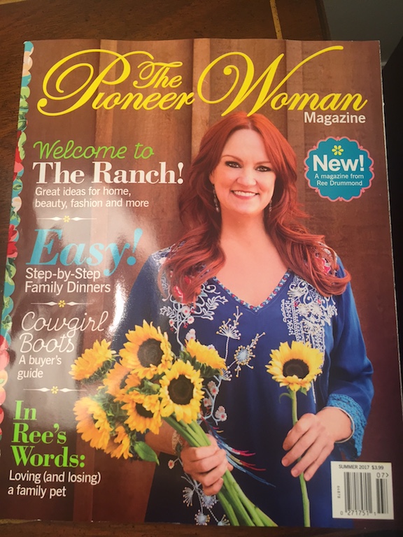 A while back I heard that Ree Drummond was working on a magazine. I mean, what does this woman not do? I love her story. She started a cooking blog years ago and eventually she had her own food show. She then developed her own line of good-looking cookware and serve ware which is sold at Walmart as well as in her new store. Yep, that’s right, she and her husband Ladd renovated an old warehouse that now houses all types of fun home goods, cooking supplies and even some clothes and accessories. It’s called the Merc (short for Mercantile). If that were not enough, there’s a restaurant inside the store. I don’t know her but through her show and writing she comes across as a down to earth, fun person. I grabbed her new magazine the moment I saw it on the rack and fell in love. She shares all kinds of recipes, home décor ideas, fashion tips and offers readers a look into her life on the ranch. I enjoyed every single page and if you love these things then I think you will enjoy it as well.