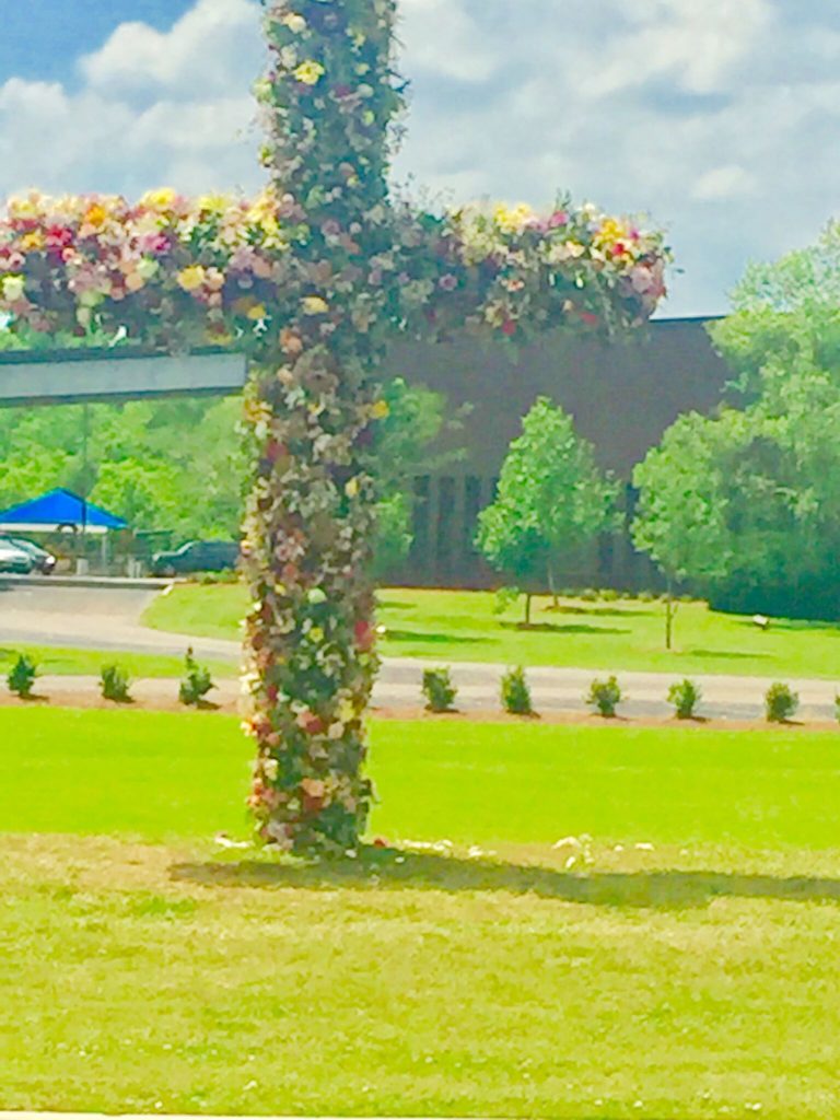 There is a church close to my house that completely covers a cross with flowers every Easter. I think it is just beautiful and look forward to seeing it each year. I wonder how many flowers it took to cover this large cross?