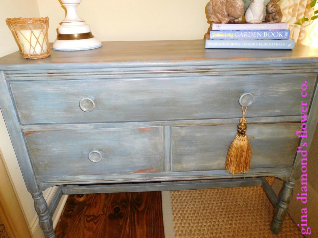 Family Heirloom Chest | This blue chest has quite a history. My mother-in-law purchased this in the 1940’s. It was one of those orange hued, maple chests. After many years passed, she gave it to her sister who antiqued it a nice harvest gold in the 1970’s. When her sister passed away, her daughter felt it belonged to us since it had originally been my mother-in-laws. The yellow really did not work in our house and so we had it painted this wonderful distressed blue. I love the blue against the neutral walls.