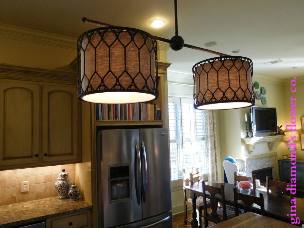 Double Drum Chandelier | We replaced the previous chandelier with this one which is perfect for the length of the island.