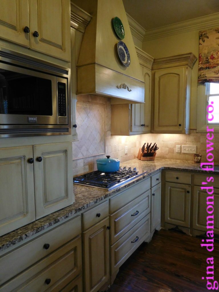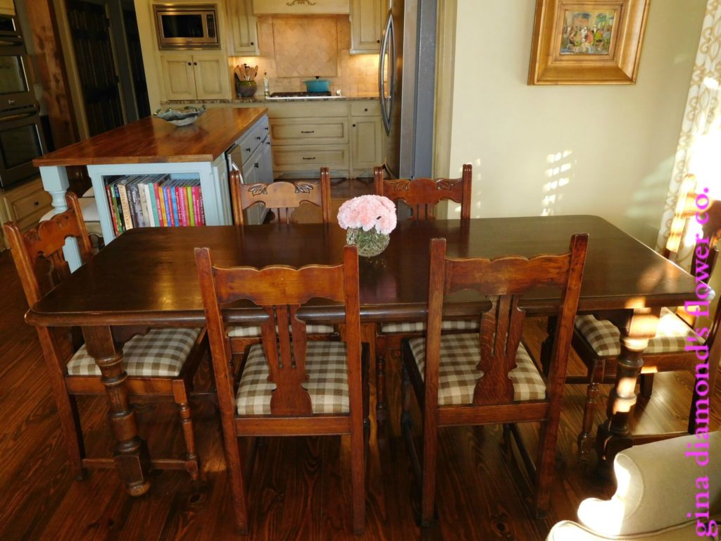 January 11, 2017, posted by Gina – It has been written time and time again that the kitchen is the heart of the home, a place where everyone inevitably gathers. This is certainly true in my home and since many floral arrangements and recipes are created in this room, I thought it would be fun for you to see the whole space and get a little history on it. This post is longer than my typical post so grab a cup of coffee and join me on a tour of my kitchen.