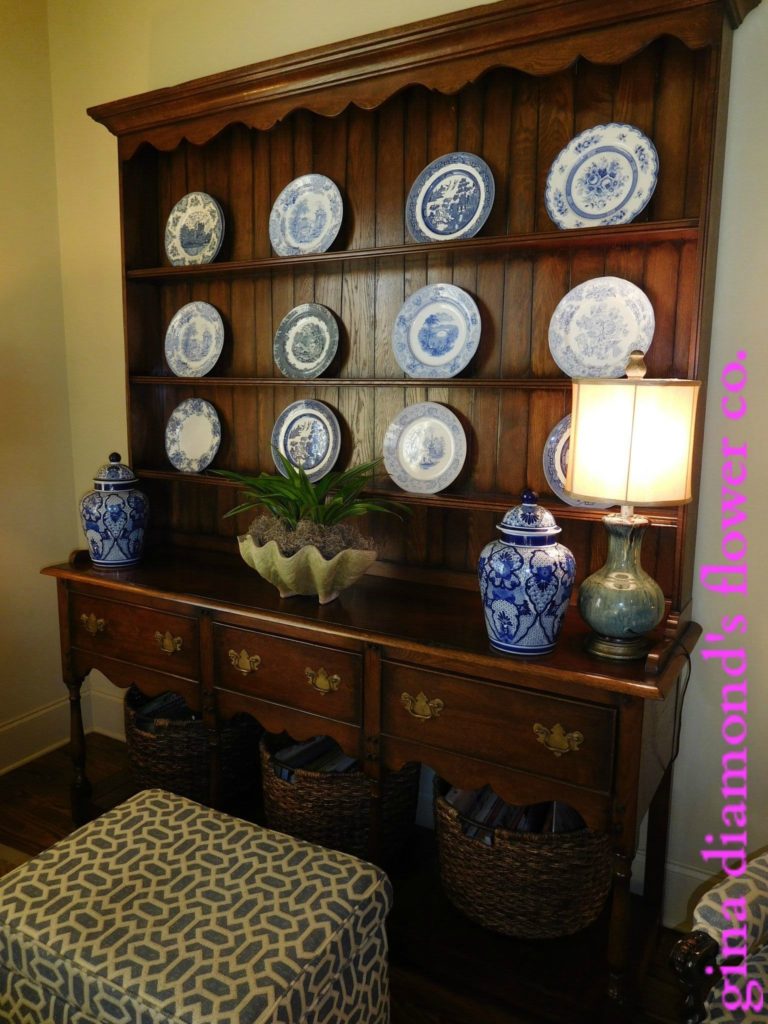 Antique Welsh Cabinet | While this wall was very large, we did not have much depth to work with. I found this Welsh cabinet at an antique shop close to our house and knew without a doubt it was the perfect piece for this space. By now you’ve probably guessed I have a love of blue and white and this piece is the perfect host for my collection.