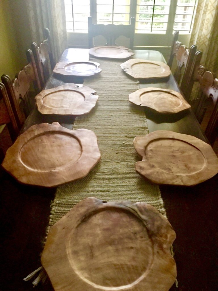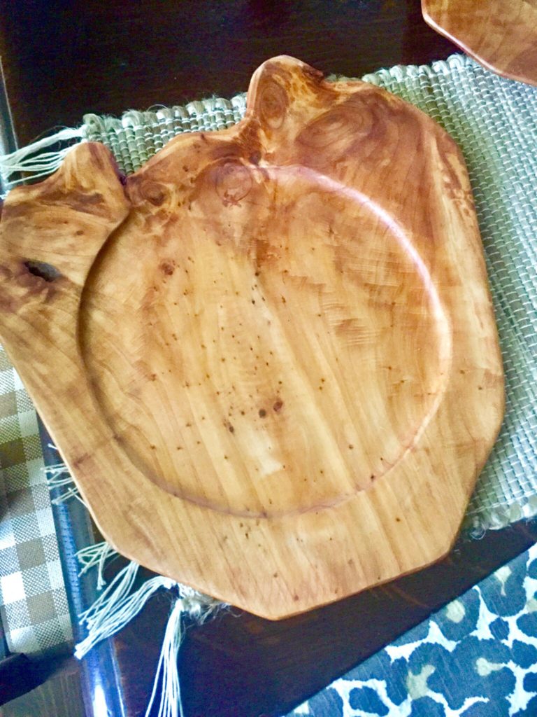 Select a charger that will coordinate nicely with your dishes as well as set the mood. These wood chargers from Rootworks reminded us of Fall.