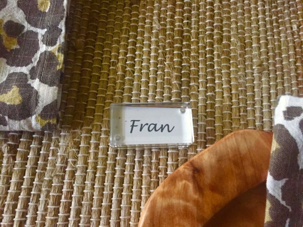 It’s always fun to add a place card. This magnetic acrylic place card is like magic. We printed names from our computer and cut them to size.