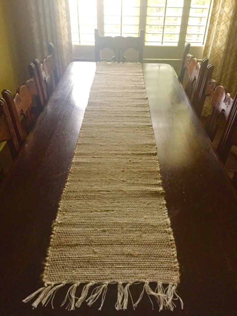 Keeping the color of the dishes you would like to use in mind, choose a table runner or tablecloth as your starting piece. We chose this neutral, rustic table runner to coordinate with our Fall tablescape. This runner was from Homegoods.